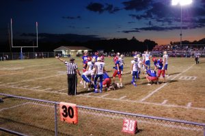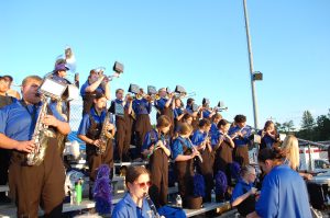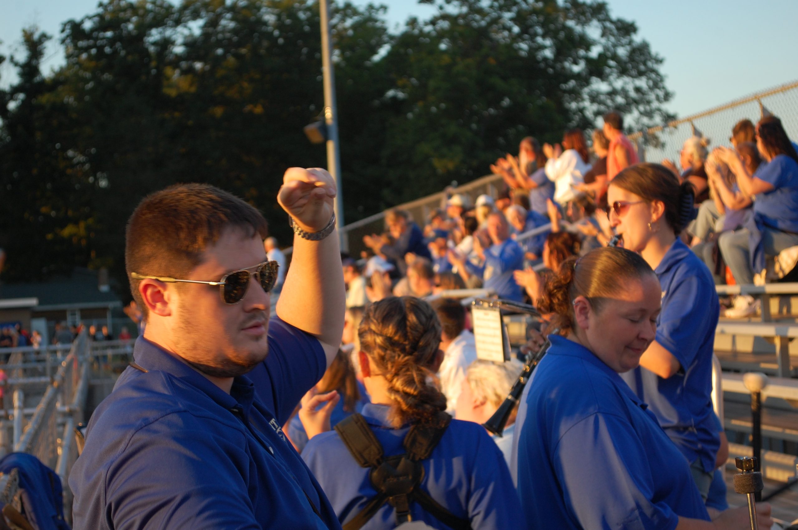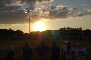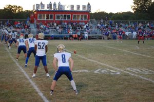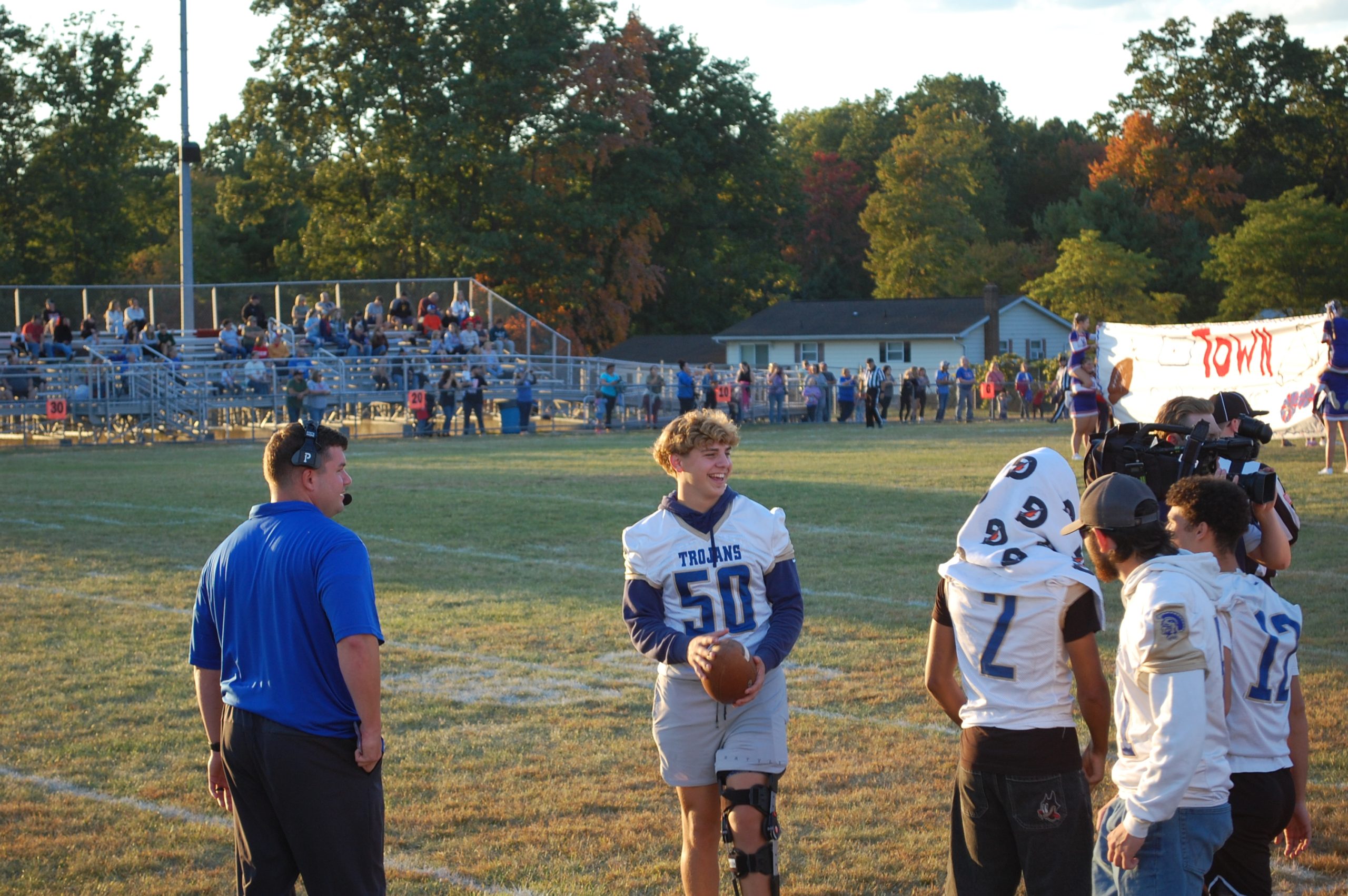 September 12th Away Football Game / Newspaper: Sports / By Cody Sieber Senior Zakheila Trice and sophomore Dane Varner talk before the beginning of the Mount Union at West Branch football game. The Mount Union Trojan Marching Band plays “On Mount Union” to welcome the Mount Union football team to the field. Senior Abe Weirich talks with teammates before kickoff. Mount Union players and coaches and players watch West Branch kickoff to start the game. Mount Union band director Tyler Dixon directs the band after a Mount Union touchdown. Junior Dominic Lemin plays snare drum during “On Mount Union.” Mount Union players prepare to kick off after a Mount Union touchdown. Mount Union players help up junior Levi Hunsinger after Hunsinger blocked a West Branch punt.