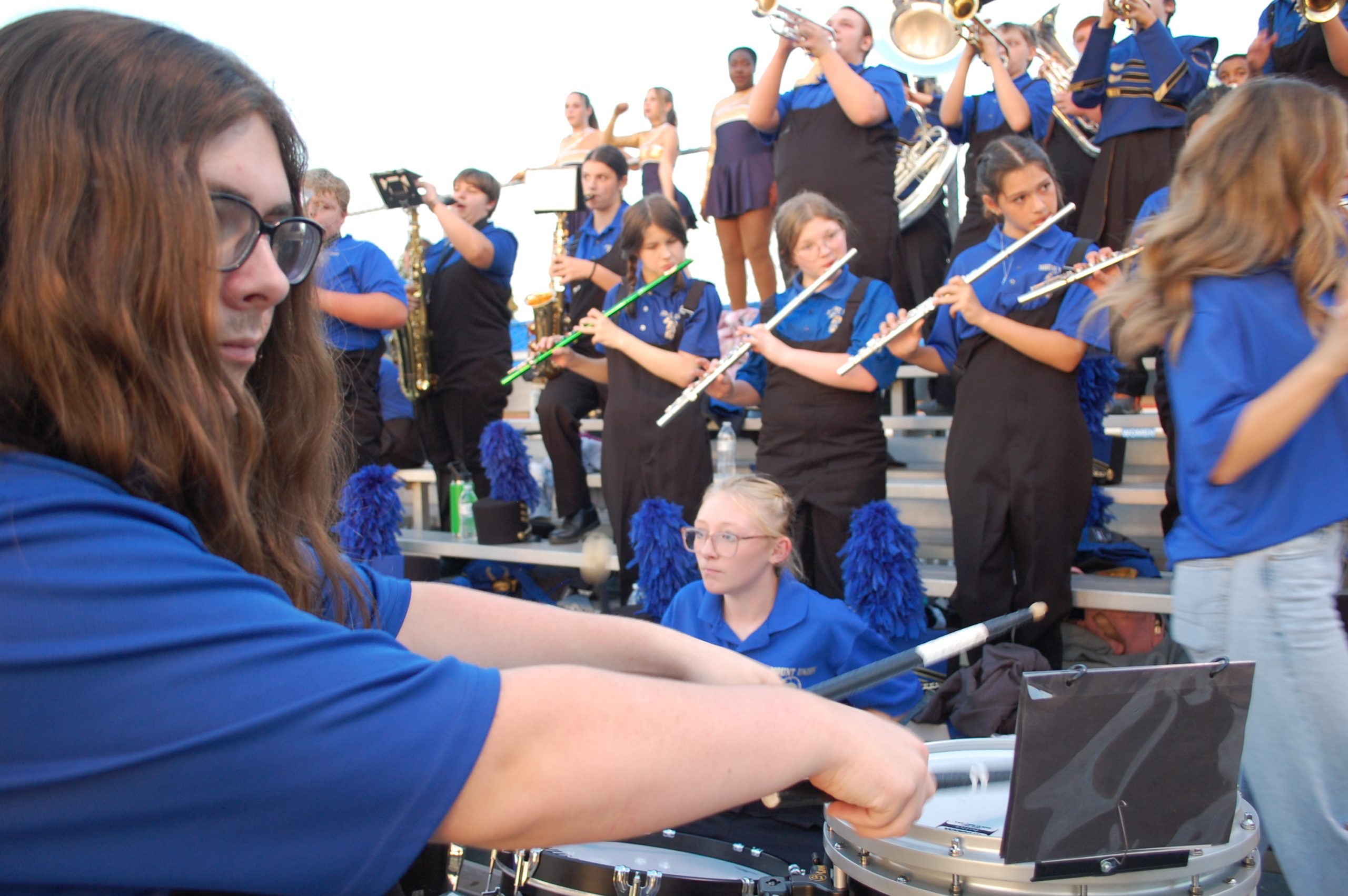 September 12th Away Football Game / Newspaper: Sports / By Cody Sieber Senior Zakheila Trice and sophomore Dane Varner talk before the beginning of the Mount Union at West Branch football game. The Mount Union Trojan Marching Band plays “On Mount Union” to welcome the Mount Union football team to the field. Senior Abe Weirich talks with teammates before kickoff. Mount Union players and coaches and players watch West Branch kickoff to start the game. Mount Union band director Tyler Dixon directs the band after a Mount Union touchdown. Junior Dominic Lemin plays snare drum during “On Mount Union.” Mount Union players prepare to kick off after a Mount Union touchdown. Mount Union players help up junior Levi Hunsinger after Hunsinger blocked a West Branch punt.